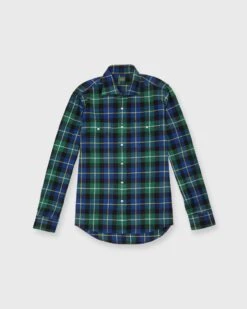 Spread Collar Sport Shirt In Dress Stewart Tartan Flannel
